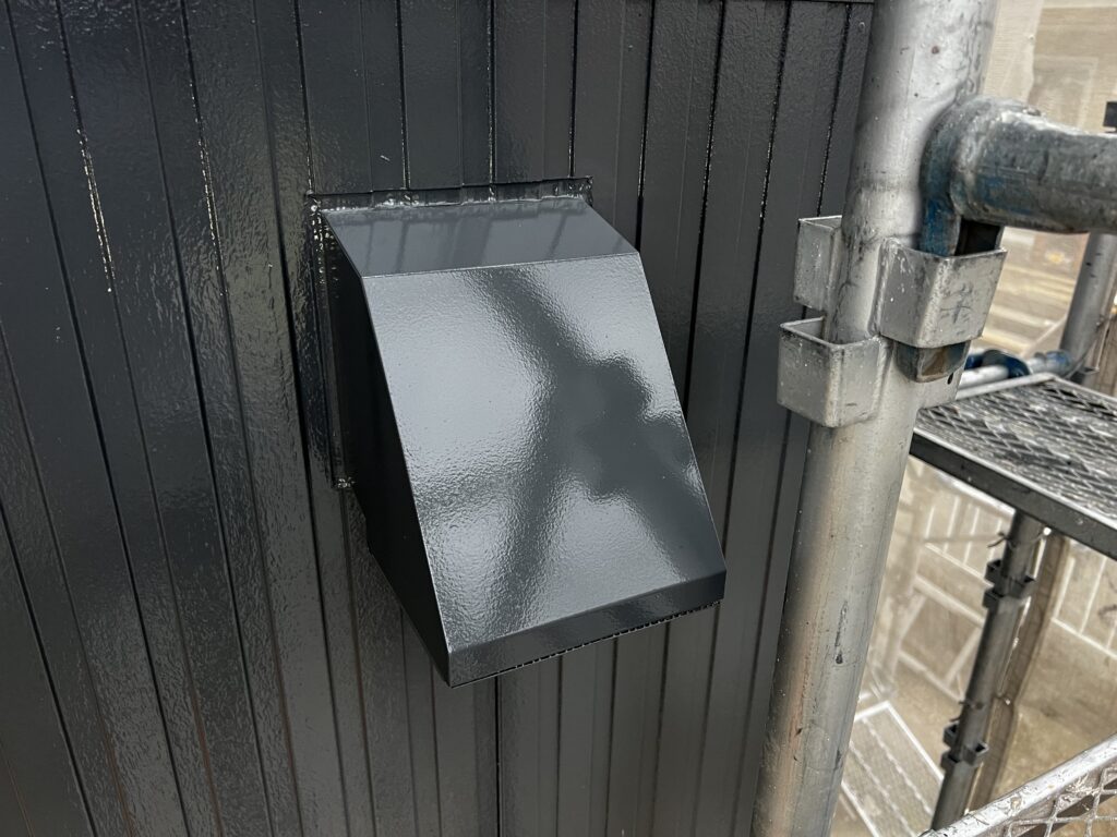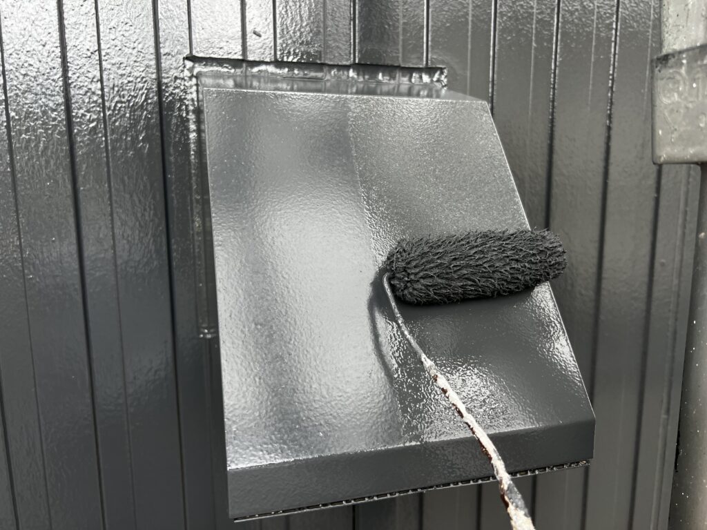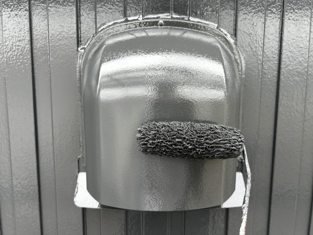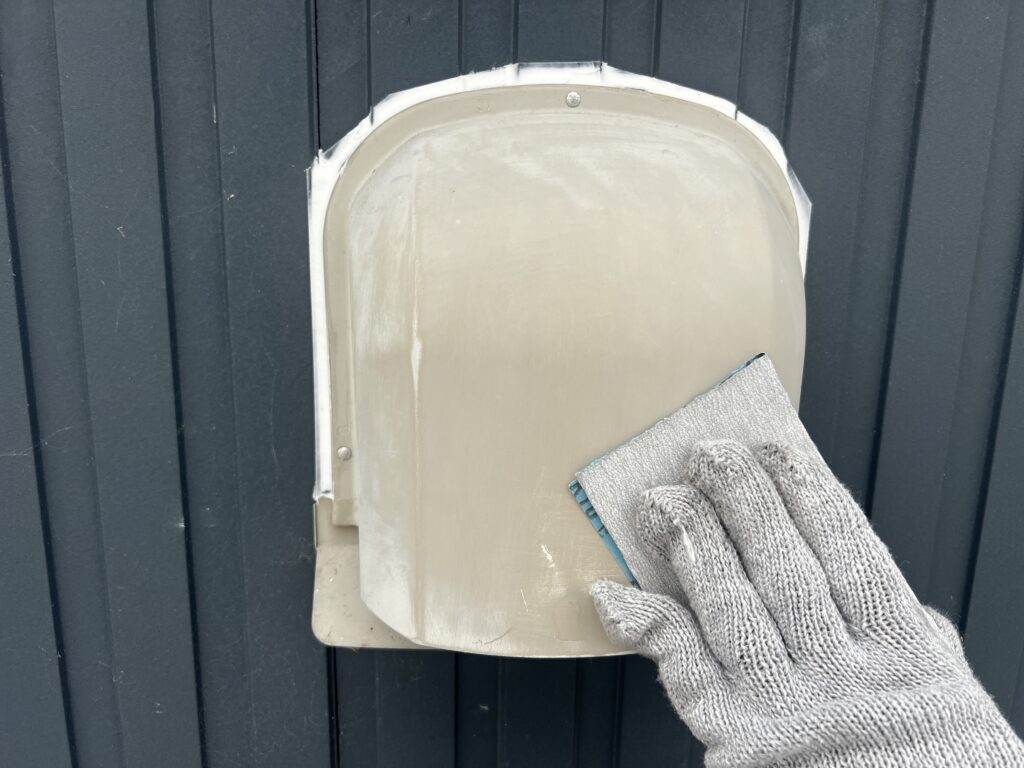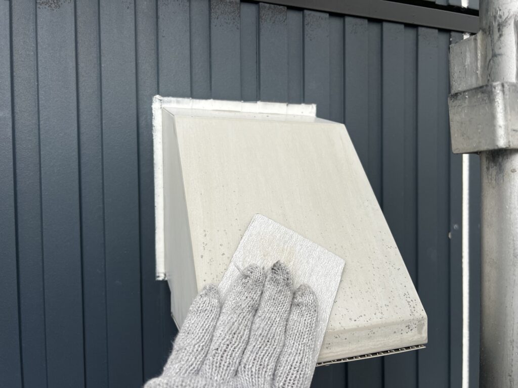 今回は通気口・換気口の塗装工事になります。まず初めに一番大切になってくる工程でもある下地処理です。こちらは塗装する前に表面に傷を付けていく作業になります。劣化しているとザラザラしていたり、錆が発生していたりするのでそれを取るようにして尚且つ傷をつけていきます。何故わざと傷をつけていくかといいますと、塗料の密着を良くする効果があるからです。こちらの下地処理をするのとしないとでは密着力に差が生まれてきてしまうのでとても大切な工程になります。